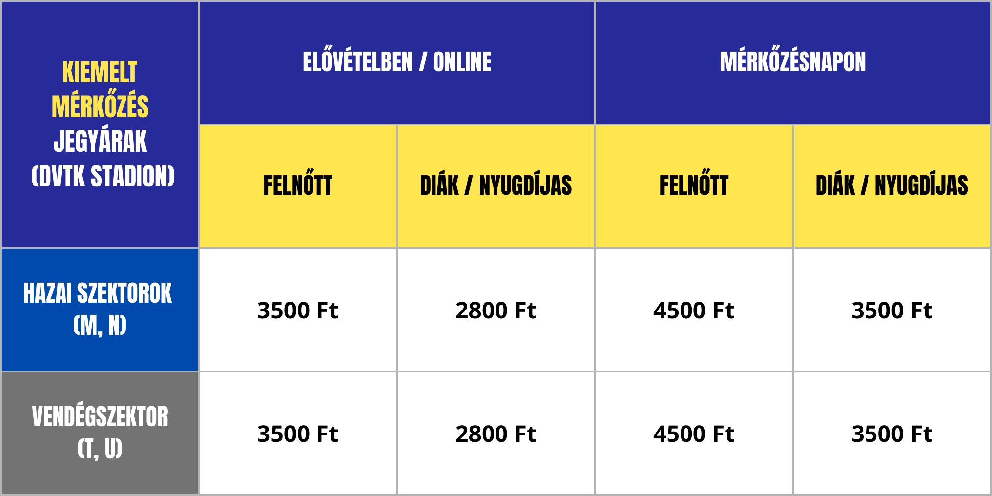 Kiemelt jegyárak (DVSC, DVTK, FTC, NYSFC, ÚFC)