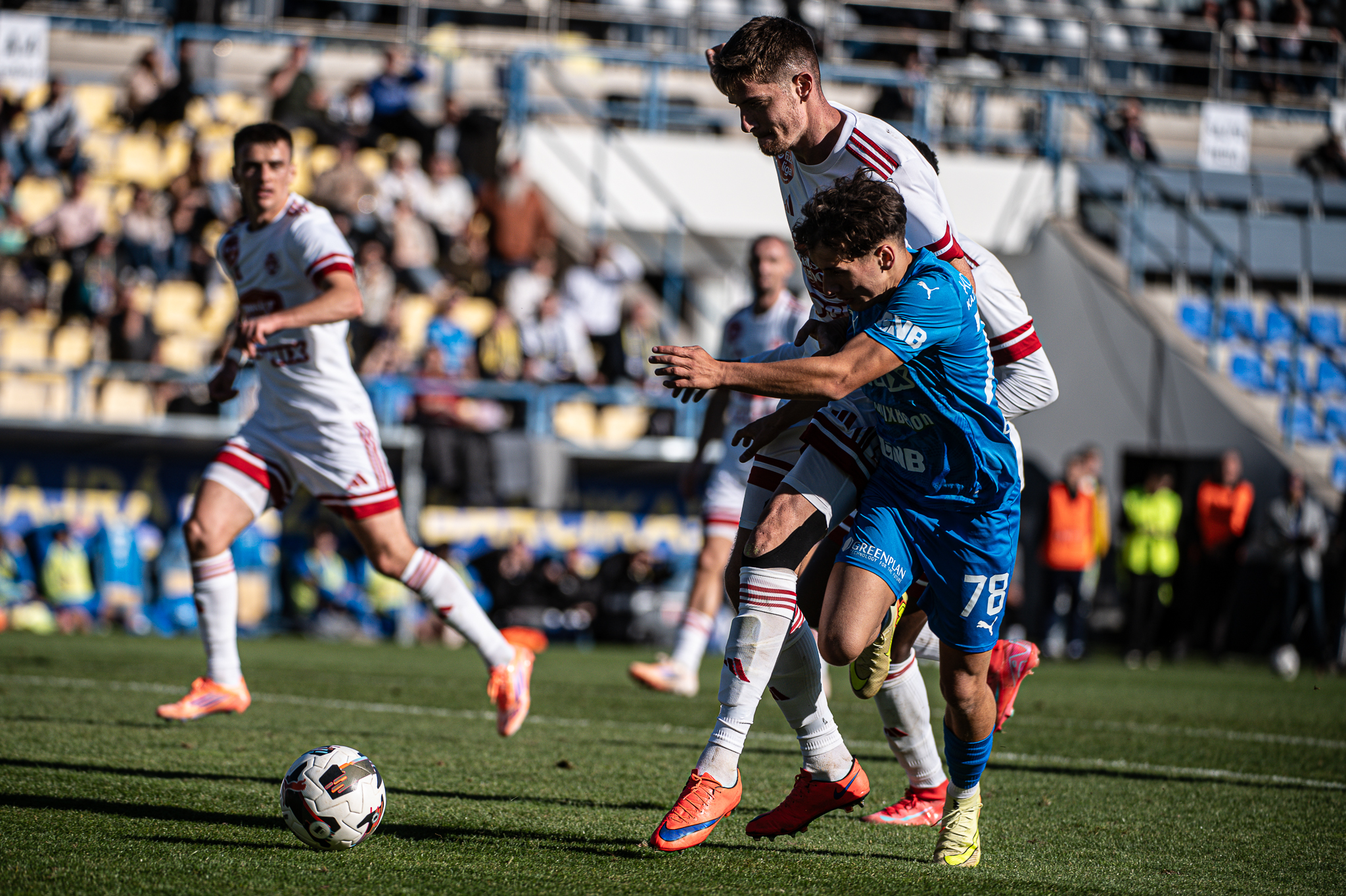 89. PERC: Kállai kap jó labdát és vezeti azt középpályáról a dorogi kapura, azonban a vendégek védői tisztáznak.